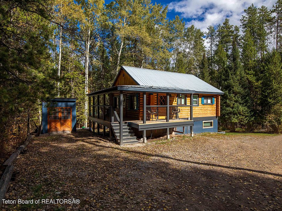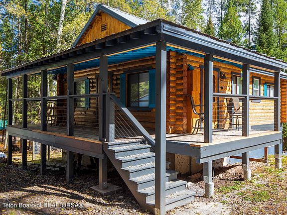 This two-story cabin is truly the definition of ''Wyoming!'' Tastefully remodeled, and decorated residence tucked into the trees, but conveniently located very close to town, and a short drive to Jackson Hole. 2 Bedroom/2 full baths with each level having One bedroom and one bathroom. Basement level can serve as a lockoff with kitchenette, additional living room and separate entrance. The home has been set up to be a turn-key rental property with excellent feedback and numerous return tenants! It has been remodeled to include a new kitchen, floor, bathrooms, water heater, cove heating, paint, new doors, and more. Come relax by the woodstove and watch the snow fall, or sit on your deck and experience the Wyoming outdoors!