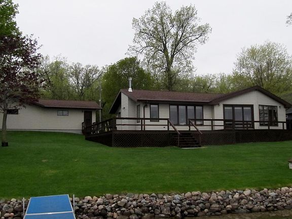 Year Round Turtle Lake Home. Three bedrooms, two baths. 1522 square foot home. Open lake side living room, diningroom and kitchen with vaulted ceilings and a fantastic view of Turtle Lake. Excellent sandy swimming beach with 120 feet of level lake frontage. Oversized 908 square foot three car garage with heated work shop. Exceptionally well cared for inside and out.