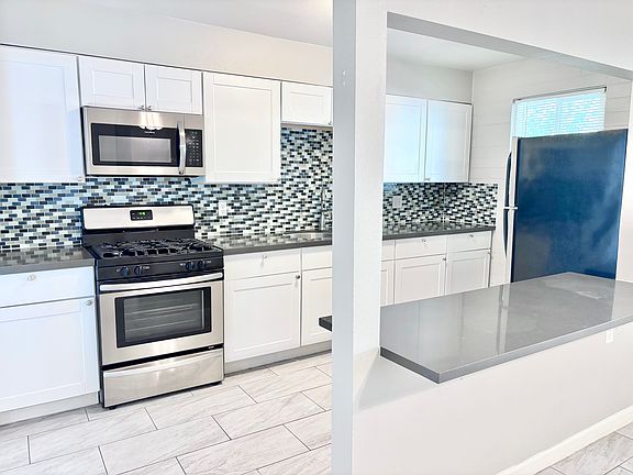 Modern finishesNewly updated kitchen cabinetsPorcelain tile flooringStainless steel appliances