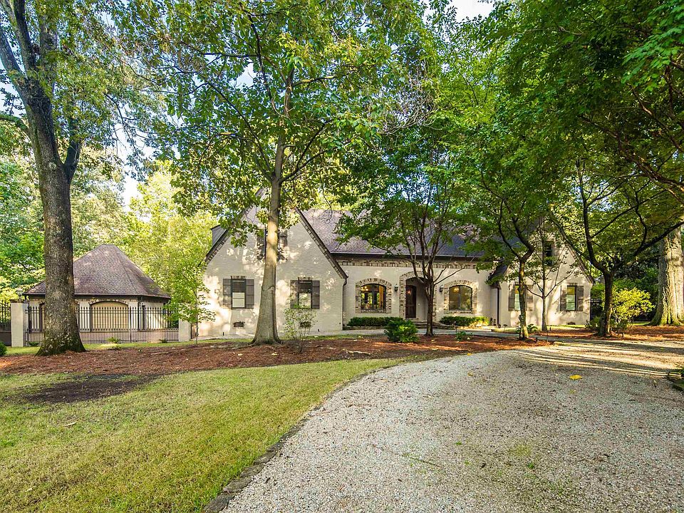 Spectacular one acre +/- English garden estate in the heart of Memphis, tucked in a quiet, established neighborhood. Designed to maximize views of the natural setting & back yard amenities, this home features lots of natural light, rich black walnut and oak floors, and stunning millwork. A chef’s kitchen with custom cabinetry, gas cooktop, double ovens, dual dishwashers, and built-in refrigerator opens to inviting living and dining areas. The main level offers a luxurious primary suite with sitting room, flex room & dual baths plus a sought after second bedroom with private bath— perfect for guests or use as an office. Upstairs includes two large bedrooms, shared bath, a spacious bonus room. Outdoor living shines with a new pool (2022), gazebo-covered hot tub (2023), and private pickleball court. With a gated drive, attached two-car garage, plus detached two-car garage/workshop, this estate blends timeless elegance with modern updates for exceptional living and limitless entertaining.