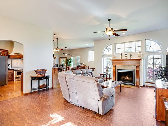 NO SPECIALS! 2 YEAR OLD ROOF! FRESH PAINT AND FLOORING! Not to sound like your high school career counselor but this house has great potential! Great potential to be perfect for you and provide you the opportunity to build equity while finishing the basement to fit your needs! Nestled in a peaceful cul-de-sac, this inviting 3-bedroom home features an open split floor plan designed for comfort, privacy, and effortless living. The main floor offers 3 bedrooms and 2 bathrooms, with the primary suite on one side of the home and two additional bedrooms plus a full bathroom on the opposite wing—ideal for family, guests, or a home office setup. The bright and airy living room welcomes you with abundant natural light, vaulted ceilings, and a cozy gas fireplace, flowing seamlessly into the formal dining area. The well-appointed kitchen includes hardwood floors, a walk-in pantry, an eat-at bar, and an adjoining dining nook that opens directly onto the back deck. The primary suite is open and airy, offering a walk-in closet and a spacious ensuite bath with double sinks, a standard-sized shower, and a separate soaking tub. Private deck access from the suite creates the perfect peaceful retreat. A midlevel walkout provides easy access to the backyard patio, offering multiple outdoor living spaces to enjoy. The view-out basement is unfinished but full of potential—already roughed in with HVAC, electrical, and plumbing for a future bathroom. There's also a dedicated rough-in for a wet bar, giving you the flexibility to create a customized entertainment space or additional living area. Located in a desirable neighborhood, residents enjoy walking paths, a playground, and access to three community pools, making it an ideal setting for both relaxation and recreation. With its functional layout, natural light, fantastic amenities, and tranquil setting, this home blends comfort, convenience, and potential in a beautifully planned community.