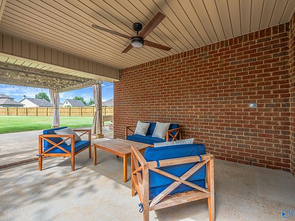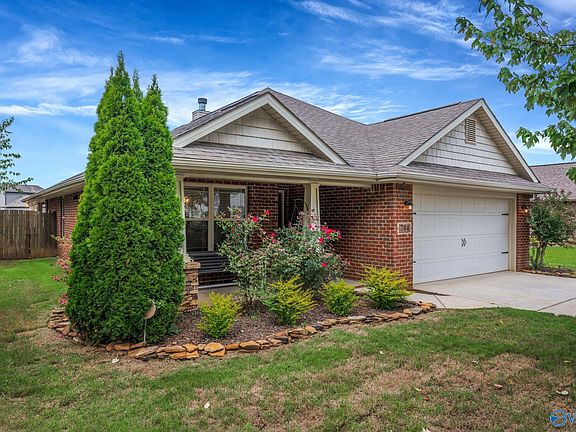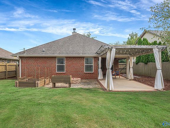 Move-in ready & made for fun! This updated home features new paint, carpet, and lighting with a modern kitchen showcasing granite counters, backsplash, vented hood, and sleek appliances. The living room’s wood floors, tray ceiling, and fireplace set the stage for cozy nights in. Outside is your oversized backyard retreat—covered patio, pergola, fire pit, garden, and fresh landscaping make it perfect for gatherings. Extras like irrigation, security system, and newer HVAC add peace of mind. Community pools, pickleball, basketball, gym, and clubhouse deliver a true resort lifestyle. Close to major employers and the energy of Rocket City, this home blends comfort, convenience, & outdoor living!