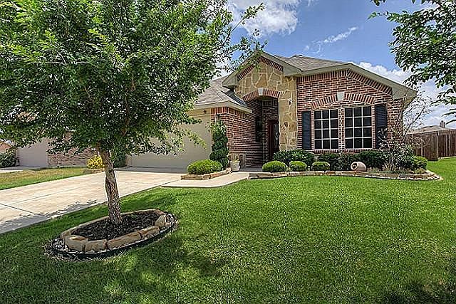 This property is well maintained, attractive, and awesome. Guests will notice the distinctive and beautiful entrance into your home. A covered 8’x6’ entryway floored with brick pavers, a door with a shining glass star, complemented by an artistic star design in the ceramic tile foyer. The living area is an open floor concept. The large eat-in Kitchen has granite counters, lots of cabinets, a breakfast bar, pantry, with the Laundry Room conveniently located off the kitchen. The Kitchen overlooks a 20’x16’ living room with a fireplace. All windows have blinds and solar screens. The Living Room and all Bedrooms have ceiling fans. The Primary Bedroom is a 16’x15’ with a 3’x5’ entry and is perfectly located on the back southeast corner of the home. It has a very spacious 12'x5' walk-in closet, ensuite bathroom with dual sinks, and separate shower and bath. One Secondary Bedroom is down the hall from the Primary and the other is on the front NW corner allowing for some separation. The 2 Car Garage is clean with a very nice epoxy-painted floor. Step outside onto a 10'x8' patio and a large grassed backyard. This home provides comfort with practicality. PLUSES: 1) Located in Spring Meadow Subdivision, WITHOUT MUD OR PID FEES, common to other properties is this area, which will reduce the tax burden making it more affordable. 2) NEW SHINGLES August 2025. 3) Survey available. 4) Some landscape pics are older as you can tell by the tree growth, and grass will be added to front yard. 5) Conveniently located near schools, downtown Fate, restaurants, food trucks, Fire and Police Station - in walking distance or a very short drive; close to grocery stores, gas stations, highways, and lakes Ray Hubbard and Lavon. 6) Community amenities include a playground and fishing pond. Agents, come show it. Buyers, come make it yours! It is AWESOME!