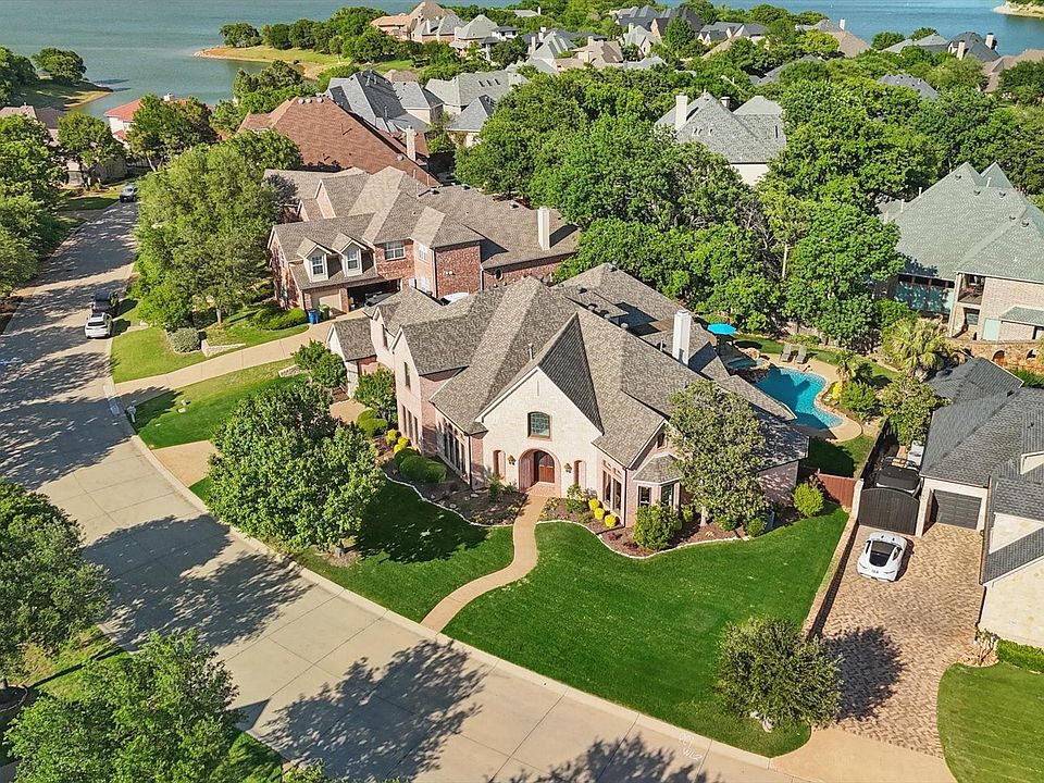 Welcome to this exceptional custom home nestled in The Pointe, one of the most coveted enclaves within the master planned Highland Shores community. This beautifully maintained 5 bedroom home exudes timeless elegance and thoughtful design, featuring rich hand-scraped hardwood floors, detailed crown molding, dual staircases, downstairs secondary bedroom with full bath and a premium built-in Sonos sound system for seamless entertaining inside and out. The spacious primary suite is a true retreat, offering an oversized walk-in shower, a striking freestanding soaking tub, and a tranquil ambiance for ultimate relaxation. Every inch of this home reflects quality craftsmanship and pride of ownership. Step outside to your private backyard oasis, an entertainer’s dream, boasting a newly resurfaced lagoon-style pool with waterfalls, a heated spa, and a pergola shaded outdoor kitchen ideal for year-round gatherings.