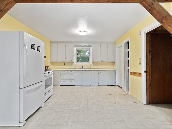 Looking for a winter project or a fixer upper? This New England Style colonial farmhouse could be your next project. The first floor has a large kitchen, full bath and 3 additional rooms with a potential of a first floor master. The second floor has 3 bedrooms and a larger walk in closet/storage area with the original back staircase. A narrow staircase leads to the attic with additional living area potential. Unfinished basement for storage. The back yard area has a huge garage/barn and is a car collectors dream. It was once a horse barn with an abundance of storage space above. Several storage containers to remain with the property. Title V inspection has not been completed and is buyer's responsibility. The property is being sold as is, the seller will not be doing any repairs. Use caution on stairs and decks, seller is un aware of the condition and structure. Showings begin immediately, hosting a commuter's open house on Thursday 10/20 4-6