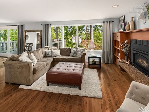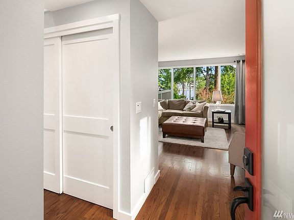 Partial Lake Washington and Mt. Rainier views in this completely updated modern home with impeccable use of space. 2900+SF of designer touches from top to bottom. Home includes remodeled kitchen with eating space, updated bathrooms, sumptuous master suite with vaulted ceilings, 2nd master suite with ensuite bath and 2 additional bedrooms. Huge lower rec room has built-in office area and access to flagstone patio with hot tub and large entertaining decks. Located just blocks away are Clarke Beach, Mercer Island Beach club, Pioneer Park, Starbucks, QFC shopping center & more!