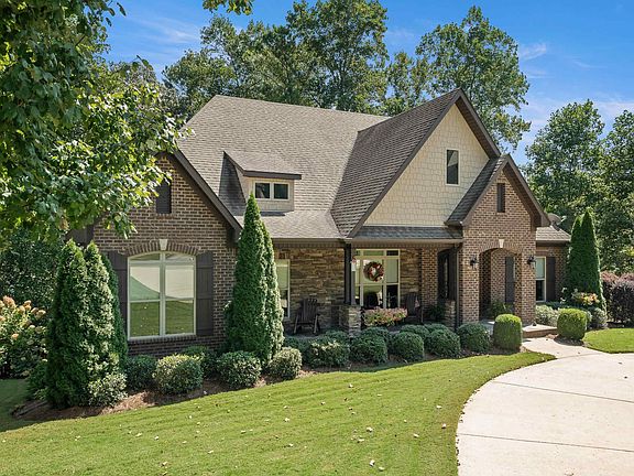 Custom one-level home, designed for comfort and convenience, offers 4 bedrooms and 3 baths, complimented by a finished basement, a huge 3 car garage with an additional storage room-immaculate and move-in ready. Accessible via a circular driveway and distinguished by elegant iron doors, the home’s main level features hardwood floors, crown molding, and decorative stacked stone and wood accents. The open living area centers around a striking stacked stone fireplace and the remodeled kitchen. The primary suite stands out with an additional room for sitting/office. The bath has a double vanity, separate shower, garden tub, and double closets. A daylight basement provides versatile spaces currently used as a den, work-out room, bedroom, and full bath. Basement level rooms have access to a covered patio. Enjoy the outdoor living offering a screen porch, fireplace, an open deck, and a lush, fenced yard backing up to the woods—all perfect for relaxing and entertaining. Trussville Schools