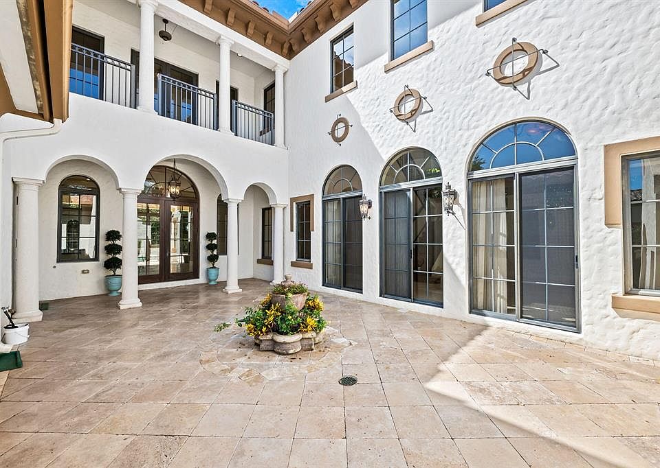 Oversized courtyardFamily roomSoaring ceilingsCbs constructionSpacious kitchenArchitectural detailsFormal dining room