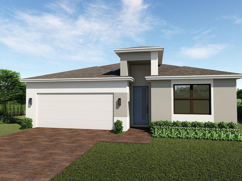 A Modern Ranch-Plan. Covered entryway with impact side light front door. This home is a stylish 4 bedrooms, 2-bathroom, 2 car Garage. When you step inside you will find Light grey plank tile floors throughout the home and bedrooms, A large Beautiful Gourmet kitchen opening to the living and dining areas. Grey cabinets. Stainless steel appliances, Quartz waterfall island with ample counter and cabinet space. Large pantry. Covered Lanai. The primary Bedroom is a beautiful en-suite offering a large tile shower and a separate soaker tub with a large walk-in closet. Plenty of room to relax. Three additional bedrooms and a full bath. This home is in the lovely seaside town of Stuart with easy access to I-95, top rated schools, shopping, dining and recreational amenities. Don't Miss the opportunity to own this exceptional property Where luxury meets nature in perfect harmony. Schedule you're showing today and make this your dream home. BRAND NEW HOME! CALL FOR A TOUR AND MOVE IN SPECIALS. Restrictions may apply* Pictures, photographs, features, colors & sizes are approximate for illustrations purposes only and will vary from the homes as built. These are not of the actual home but are similar to the home being built.