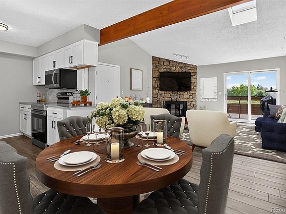 Assumable Mortgage! Welcome to your dream home in the heart of Lakewood, CO, just steps from vibrant Edgewater! This stunning 2-bed, 2-bath top-floor condo has been fully remodeled with modern elegance and thoughtful upgrades. Step inside to discover luxury vinyl plank flooring throughout, complemented by vaulted ceilings and a cozy stone fireplace that anchors the living space. The fully updated kitchen shines with sleek new cabinets, sparkling quartz countertops, and brand-new stainless steel appliances, perfect for culinary enthusiasts. Unwind on your private balcony with serene views, or retreat to the primary bedroom featuring a spacious walk-in closet and a beautifully updated en-suite bathroom. The full guest bathroom is equally stylish, ensuring comfort for visitors. As a top-floor unit, enjoy peace and privacy with no neighbors above. Plus, take advantage of a rare opportunity with an assumable FHA loan with a low interest rate of 2.49%. Don’t miss this move-in-ready gem in a prime location near Edgewater’s trendy shops, dining, and outdoor recreation!