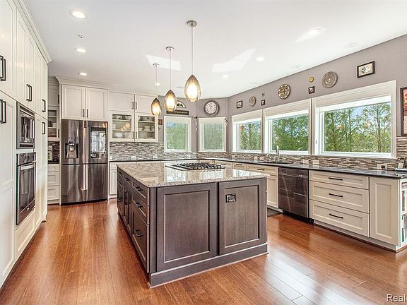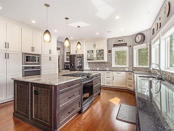 Enjoy the ultimate in lake life with this stunning lakefront retreat located on private all-sports Lake Shannon This immaculate 5 bedroom, 5.2 bath home includes access to some of life's greatest pleasures The vaulted entryway opens into an open floor plan featuring panoramic views of the lake. The beautifully modern kitchen provides expansive water views and flows seamlessly into multiple dining, deck, and living areas. Relax in the master bedroom's oasis of tranquility with a spacious bedroom and sprawling spa-like master bathroom featuring floor-to-ceiling windows. An indoor pool house offers a beautiful setting for year-round fun Multiple deck and patio areas overlook a spacious yard, lake-front patio, and beach area spanning 126 ft. of lakefront property, the perfect setting for entertaining guests or simply relaxing A 3-car garage and lakeside garage provide ample storage for lake toys, and an active Lake Association and Ski Club complete this jewel of a lakefront home