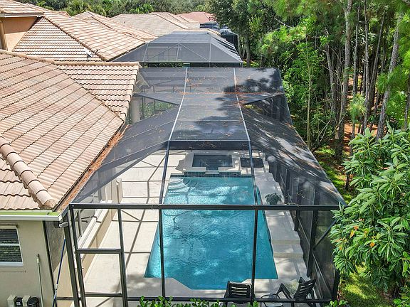 WELCOME HOME! Popular Fairview plan in PGA Village w/ NEW 2024 SALTWATER POOL & SPA! This 2BR+Den/2BA/2CG home has an open floor plan ideal for entertaining & modern living. Special features include tile flooring throughout, decorative glass entry front door, neutral interior paint, new refrigerator, washer, dryer and water heater, vaulted ceilings, updated cabinetry and more. The spacious kitchen features gray cabinetry, granite counters, tile backsplash, SS appliances, pantry closet and breakfast bar. Master Suite has large walk-in closets and a spa like ensuite w/ soaking tub, walk in shower and large vanity w/ dual sinks. The guest bedroom and den are both close to the hall bathroom. Spacious laundry room leads to the garage. The star of the show is the NEW POOL & SPA, built in 2024. Whether spending your afternoon floating in your private pool or enjoying some of the many activities PGA Village has to offer, you are sure to find something to do! HOA dues include basic cable, internet, lawn care, guarded security, common area maintenance as well as access to PGA Village's amenity center, the Island Club.