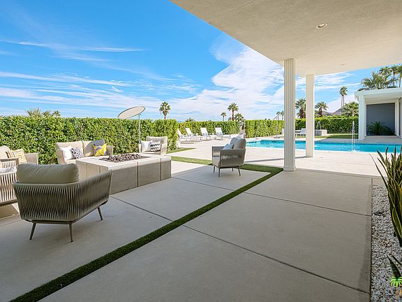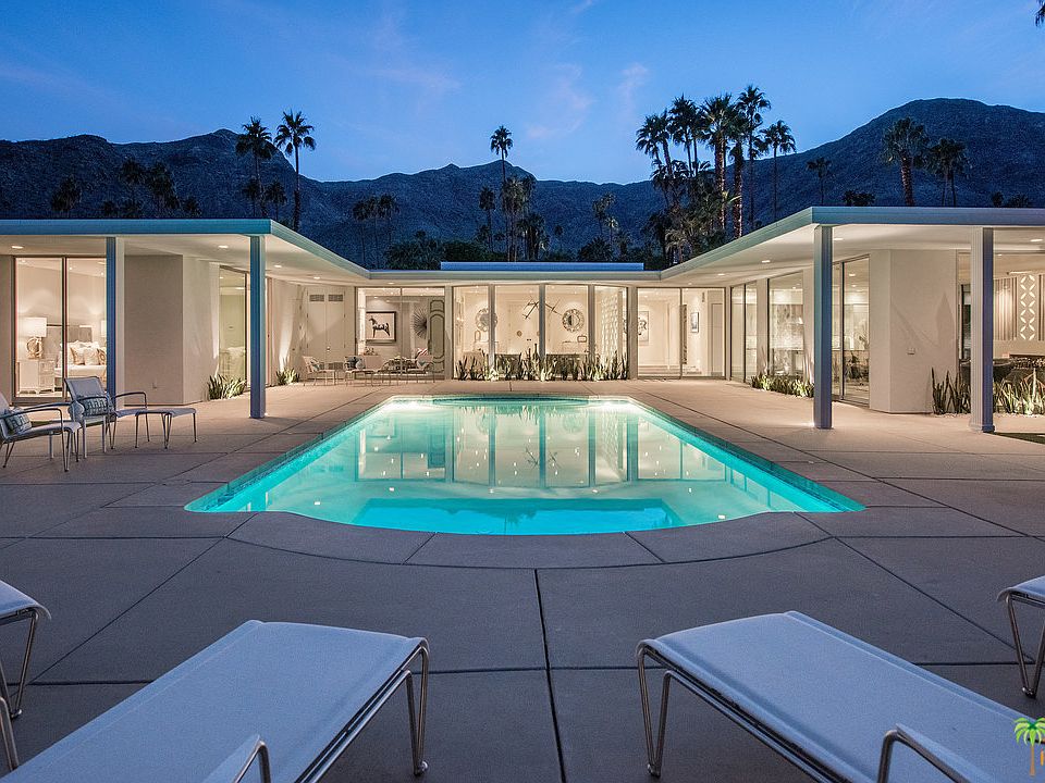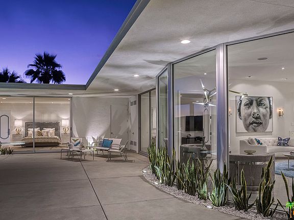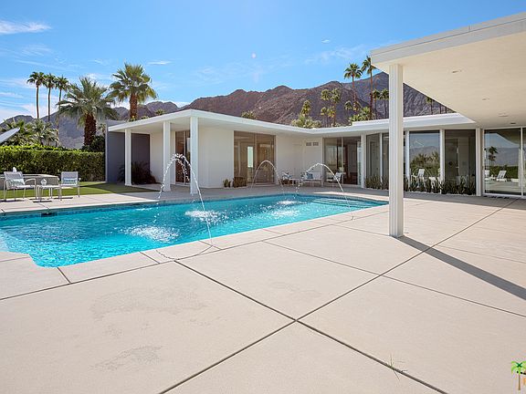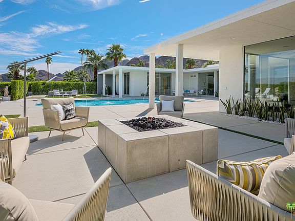 Designed and built by architect Jack McCallum in 1960 and now re-imagined by H3K Design for this century, the Swan home exemplifies the grand optimism and the architectural elements of the burgeoning mid-20th century architecture that was exploding across the Coachella Valley. Walls of glass provide 360 degree views of the valley below and mountain range above. The arrangement of the living room, great room, media room, dining room, kitchen and outdoor areas are ideal for intimate or grand entertaining venues. There are 4 private bedrooms, all with incredible adjoining baths. The master bath features a walk in shower for two, double vanities and a large soaking tub. The private rear grounds include an upgraded pool and a new spa, fire pit and built in barbecue area, all perfect for outdoor entertaining.