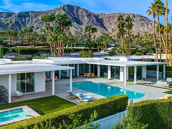 The Swan House, where iconic mid-century modern design meets unmatched 360 degree views. Located in the prestigious Thunderbird Heights, this home offers a rare opportunity to own a true architectural masterpiece. Designed and built by renowned architect Jack McCallum, this stunning Mid-Century Modern residence seamlessly blends sleek lines, open spaces, and expansive glass walls that bring the breathtaking surroundings indoors. Perched high above the valley, this home boasts 360-degree panoramic views of the Coachella Valley, capturing mesmerizing city lights below and the rugged mountain peaks above. Whether you're relaxing by the pool or entertaining guests, the scenery creates an ever-changing canvas of natural beauty. With 4 spacious bedrooms and 4.5 beautiful bathrooms, the Swan House offers unparalleled comfort and style. The open-concept great room features walls of glass that flood the space with natural light while framing the incredible vistas. The living room provides an intimate space for quiet moments or gatherings, all with access to the outdoors. The gourmet kitchen is both functional and stylish, perfect for culinary enthusiasts, while the formal dining room makes every meal feel like a special occasion. Step outside to your own private resort, where a sparkling pool and spa invite relaxation, while the surrounding fire pit provides an intimate space to unwind as the sun sets behind the mountains. The expansive outdoor living areas are ideal for hosting gatherings or simply soaking in the desert lifestyle. Centrally located between Palm Springs and Palm Desert, this home offers the best of both worlds: seclusion and privacy in one of the most sought-after neighborhoods in the Coachella Valley, with easy access to world-class shopping, dining, golf, and entertainment. The Swan House is more than just a home; it's an iconic retreat where timeless design and unparalleled views come together in perfect harmony. Don't miss the chance to own a piece of architectural history in the heart of the desert