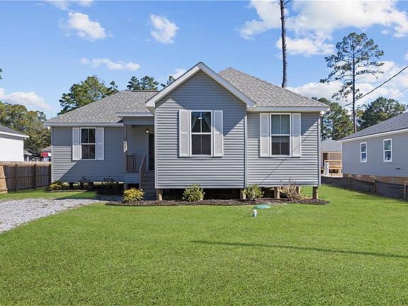 Seller will pay 1% of sales price at closing towards closing costs, etc ! Two year old raised Southern Cottage! The home features 2 porches, an open floor plan, high ceilings, double crown molding, cased window openings, a mud bench just inside the front entry , and high end finishes thruout! The kitchen features Quartz counters all around , stainless appliances, and a custom tiled backsplash. Engineered wood flooring the entire home. Primary Suite has an oversized soaking tub with shower. Don't miss the accent wall in the Primary bedroom.