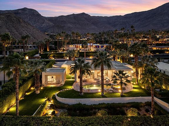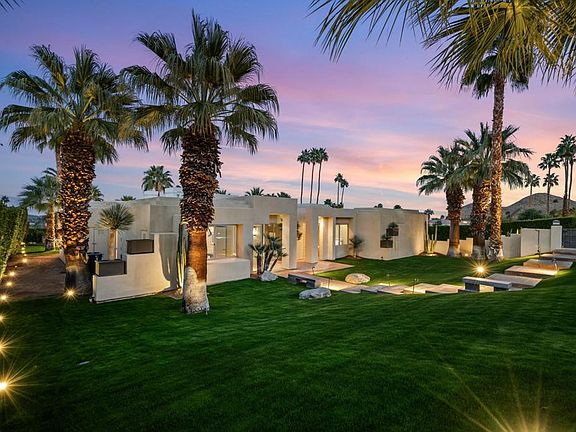 Nestled amidst breathtaking panoramic views of the valley with a majestic mountainous backdrop, this extraordinary estate in Thunderbird Heights, offers an unparalleled blend of contemporary elegance, timeless charm, and functionality from the moment you arrive via the private, extended driveway. Featuring a main residence with 3 bedrooms, 3-1/2 baths, and a separate one-bedroom, one-bath, guest house for hosting visitors. The interior is a showcase of top-tier finishes, including travertine floors, granite countertops, and custom built-ins throughout. The gourmet kitchen is a chef's dream, outfitted with premium appliances and complemented by exquisite Birdseye maple cabinetry. The expansive great room features towering ceilings with cove lighting, full wall windows, and a custom built entertainment center alongside a limestone framed gas fireplace. The luxurious primary suite is a private retreat, offering stunning down valley vistas, a spa-like bathroom with a whirlpool tub, a glass enclosed shower, and a custom walk-in closet with an adjoining dressing room. Step outside to the Pebble Tech pool and spa, with a cascading water feature, perfectly positioned to take full advantage of the spectacular scenery. Other highlights include 8-foot doors with Valli & Valli hardware, skylights with cove lighting, and a three car garage equipped with evaporative coolers. Offered furnished, this home offers a seamless transition into luxurious living.