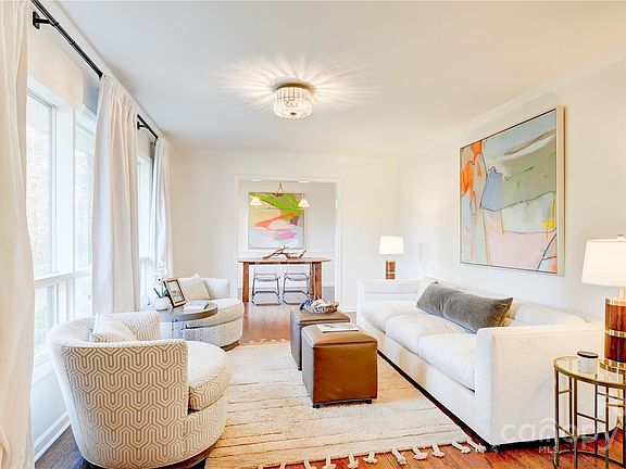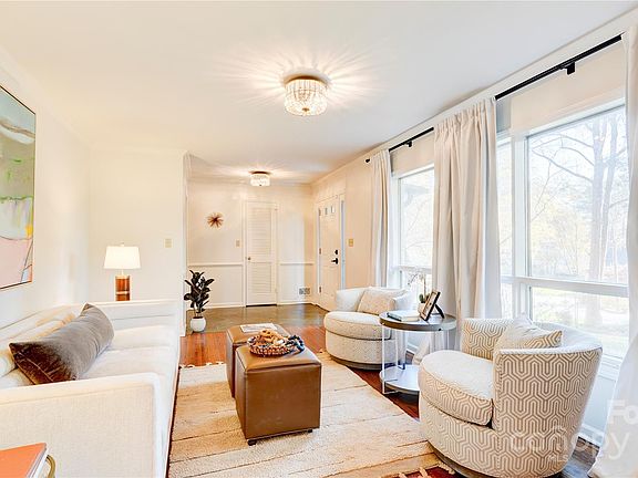 Great curb appeal in this one-level home perched on a hilltop in popular Stonehaven. Enjoy a beautiful half-acre lot with ample parking and a two-car garage with storage. Inside, a bluestone foyer leads to the stylish living and dining rooms, both filled with natural light. The kitchen features white cabinetry, granite countertops, a breakfast bar, and a downdraft range. It connects to the family room with a fireplace and sliding doors to the 270-square-foot screened porch — the perfect place to relax. There are three bedrooms and two baths, including the spacious primary suite on the back of the home. You’ll find updated lighting throughout, gorgeous hardwoods (no carpet), and custom closet systems in all bedrooms. 7044 Burlwood is the last home before entering Medearis, offering easy access to Sardis Road and nearby private schools. Move-in ready, with the refrigerator and washer/dryer conveying. Welcome home!