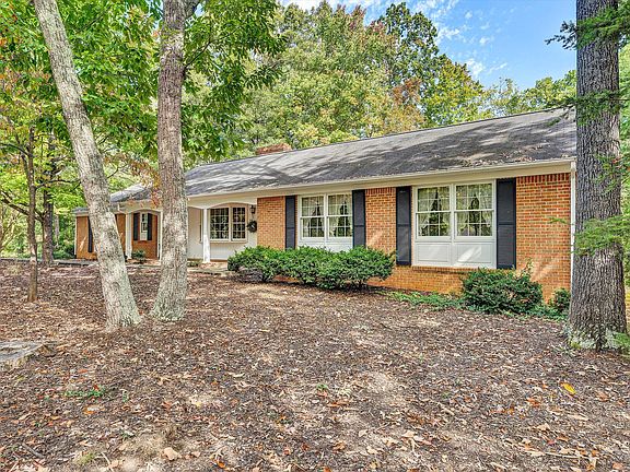 Welcome to this 4 BR, 2 1/2 Bath Brick Ranch situated in a cul-de-sac on a level 3/4 acre wooded lot with privacy in a park-like setting. Eat-in-kitchen includes a cozy fireplace, breakfast area, granite counter tops and stainless steel appliances. Large primary bedroom suite with a walk-in closet, bath room with step-in shower. Family room features a masonry fireplace leading to the dining room. Enjoy relaxing under the covered front porch or the rear private deck. Unfinished basement has high ceilings and can be finished. 2-car attached garage and paved driveway. Convenient to Airport, restaurants, health care and shopping. 10 mins. to Carvins Cove recreation area.