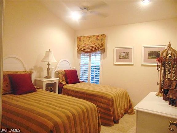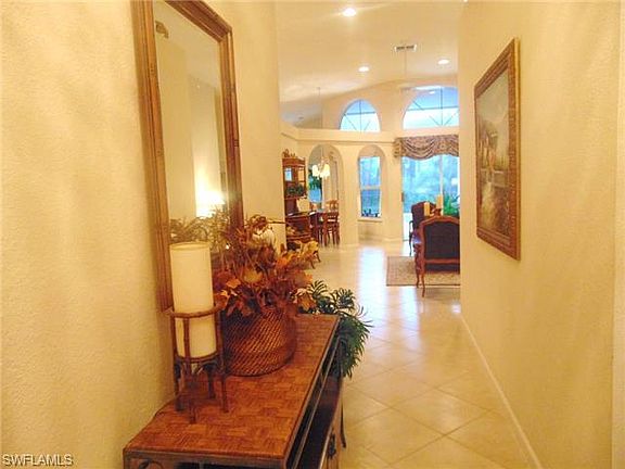 Best value in Autumn Woods! Just reduced!! This elegant 4 bedroom home with a corner location is spacious with vaulted ceiling and open floor plan. Its features 2052 square feet of living area which includes a large kitchen complete with wood- grain cabinets, pantry, island and abundant counter space with lots of storage. The family room opens onto the lanai/pool area and features a lovely breakfast nook overlooking the pool. The large master suite features a garden tub, separate glass shower, double vanity, large walk-in-closet and private access to the pool/lanai area. There is upgraded tile flooring laid on diagonal, cabinets, and recessed lighting throughout. The pool with built in valet system. Plantation shutters are featured window treatments. Brand new washer and dryer and one year old Trane AC. The home was a former model, has been very well maintained, inside and out 'FIRST OWNER, NEVER RENTED'. Ready to move in! Beautifull gated community with biking and jogging path, a community pool and spa, lighted sidewalks, a play area and fitness center. Great School district location Seagate Elementary School, Pine Ridge Middle School and Barron Collier High School. A must see!