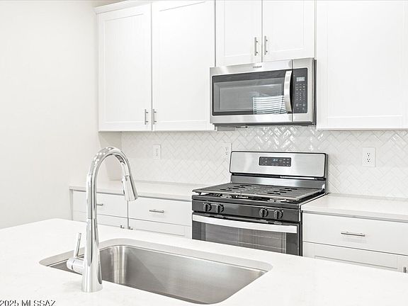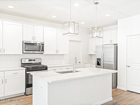 Former model home! Spacious 4-bed, 2.5-bath home with covered patio and a private primary suite tucked at the rear for peace and quiet. Features dusk cabinets, dusty white/gray granite countertops, stone-look tile, and warm beige carpet. Located under 10 minutes from I-10 with easy access to downtown Tucson and major employers. Community amenities include walking/bike trails and playgrounds. Move-in ready with washer, dryer, fridge, and whole-home blinds included. Built for comfort, energy savings, and peace of mind.