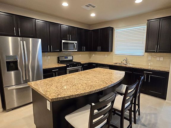 Lovely 2 Story home tastefully upgraded throughout! Open airy and entertaining style living/dining/kitchen area leading to covered patio area with professionally landscaped low maintenance turf landscaped area! Two tone neutral paint throughout, new carpet in stairway and bedrooms, tile down, ceiling fans throughout, stainless steel appliances. Beautiful park located across the street, convenient to schools, the Durango Station, shopping, and freeway access!
