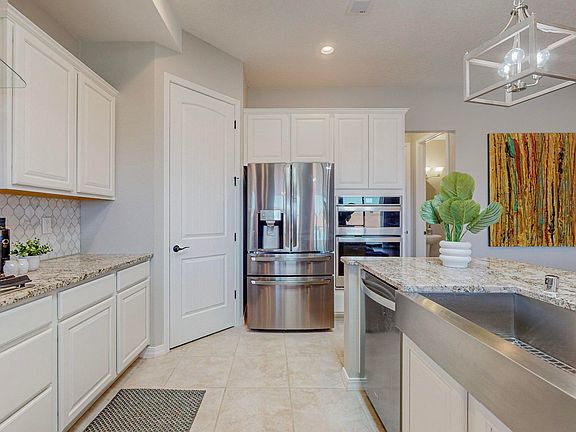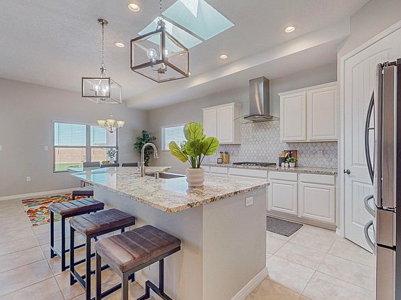 Luxury living at it's finest! Stunning Abrazo home built in 2021 and situated on a huge .24 lot with sweeping unobstructed views of the Sandia Mountains! Many builder upgrades with professionally landscaped front and backyards with SynLawn Synthetic turf! 3 bedrooms, 3 baths, 3 car oversized huge custom garage with commercial grade Penntek coating on the garage floors and 8-ft tall garage doors for those full sized trucks! Porcelain tile throughout the entire home, no carpet! Flowing open light and bright floor plan with a gorgeous chef's kitchen, granite counters, quality cabinets, stainless steel appliances, a huge island, and a large pantry! Great for entertaining! Huge covered patio flows into the fully landscaped backyard for an extended entertainment space! Including two