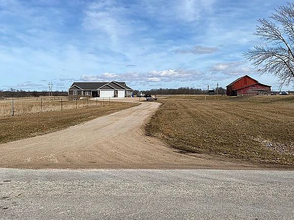 FORMER PARADE HOME, custom build one-owner ranch w/exposed LL...all on 4 acres of pure country! 18x14 covered patio w/vaulted ceiling that could be future sunroom. 9' ceiling throughout including LL, GORGEOUS solid, dark oak doors & woodwork throughout, barn beams in coffered ceiling in great rm w/wood-burning FP, OPEN CONCEPT, lg center island, walk-in pantry & 4x10 storage closet..NICE. 1st-flr laundry, lockers, BEAUTIFUL master ste w/huge WIC, dbl sinks, TILED walk-in shower. Exposed wdws in LL & more. Older sheds 32x44 & 32x36 for storage. Outdoor wood burner. Easement on Adjoining lot.