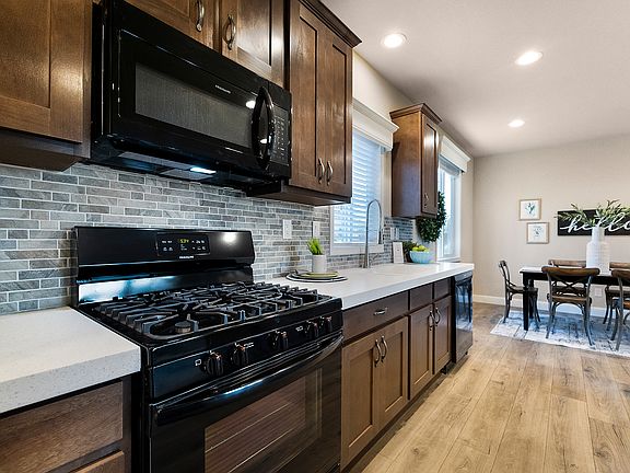 The kitchen offers a huge walk-in pantry with frosted door and skylight, all NEW black appliances including 5 burner gas stove and sided by side refrigerator with ice and water on demand. As if that weren't enough! There is a micro hood and dishwasher plus fully tiled backsplash behind the counters all the way up to the cupboards and extra tall faucet with pull out feature over the top of the double bowl sink.