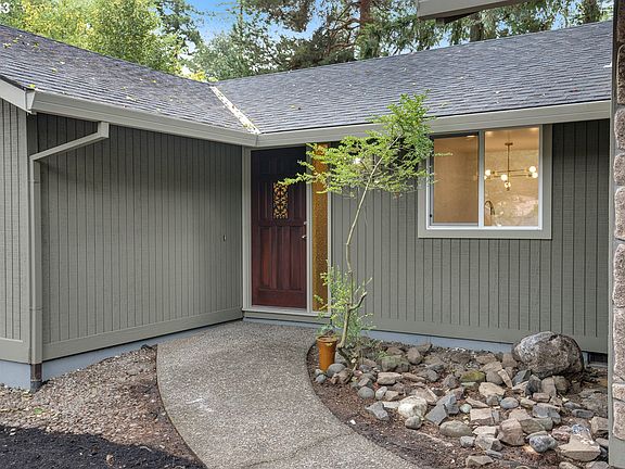 Welcome to this captivating, updated home with the essence of mid-century modern nestled in a forested setting offering tranquility + great SW proximity! Step inside + be greeted by a light + bright airiness and warm + inviting finishes including hard surface flooring, brass lighting + plumbing fixtures plus custom kitchen with shaker cabinetry, slab counters + extensive tile backsplash. The stone fireplace facade is a stunning focal point, adding a touch of timeless elegance to the living space while vaulted ceilings + authentic charm exude warmth + character. Sophisticated finishes grace the interior while exterior boasts mature trees atop a spacious 0.26 acres, perfect for enjoying nature, gardening + so much more! Located in the coveted Garden Home neighborhood of SW PDX, you'll enjoy the best of both worlds; a peaceful retreat thats just moments away from shops, restaurants + parks!