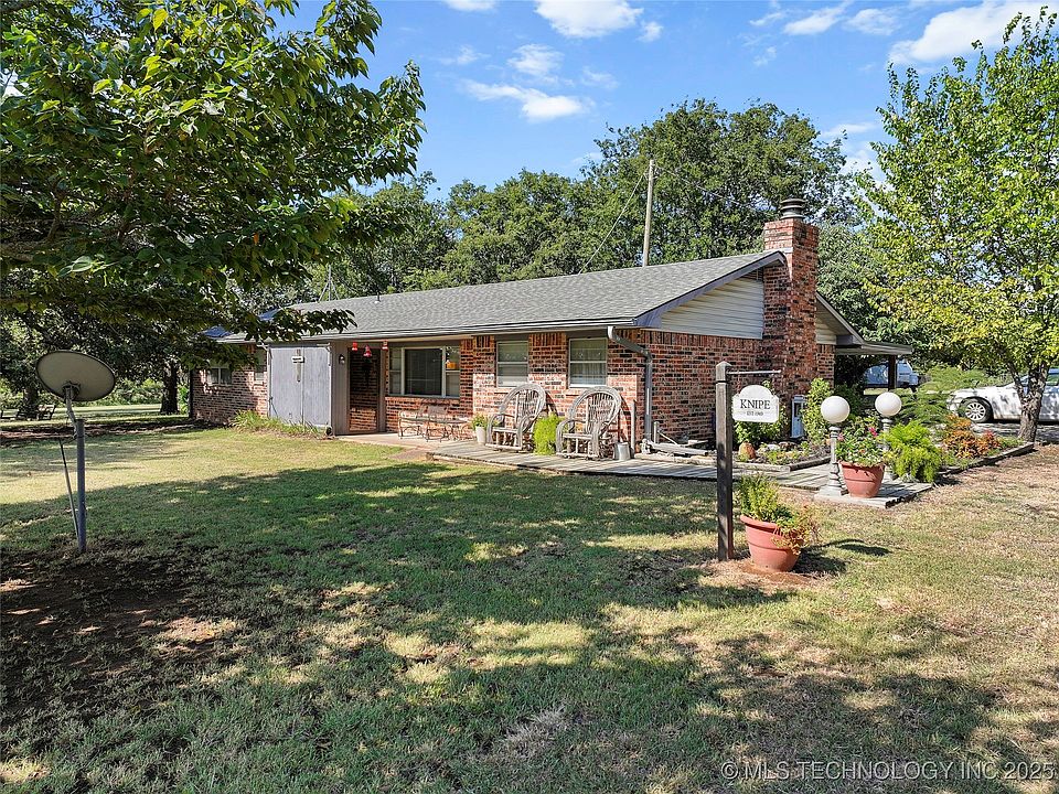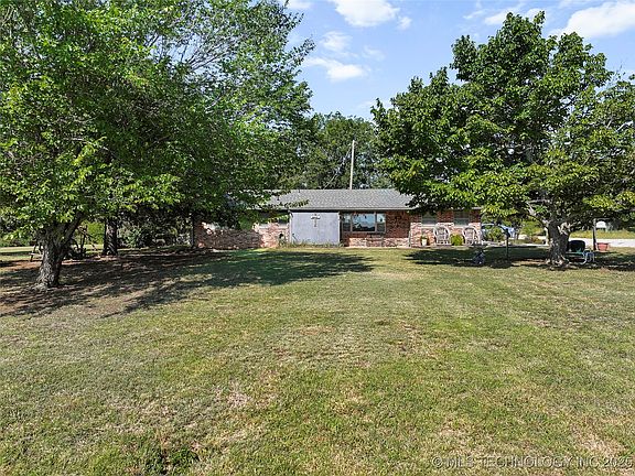 Wanting your own oasis or way into country life! Wait no further! Come check this amazing homestead out! Cozy brick home with relaxing back yard views accompanied with barns & ponds. This brick ranch style home was built with the warm western style character that states the essence of the warm southern charm & paradise ease of a relaxing oasis. You are welcomed into the home with a perfectly landscaped shaded back yard & large Koi pond with cascading water feature that magnifies the sounds of nature while watching Koi fish swim with poise eat right from your own hands, the backyard breeze is pleasing & relaxing. Your imagination can grow with the calming sounds of nature from farm life. The property sits on 23-+ Ac with two large ponds & gorgeous Oklahoma native trees swaying in the wind. The home has been well maintained with 3 bedrooms & 2 full baths. The kitchen is open to the dining area with large dine-in buffet style breakfast bar. The floor plan is perfect for hosting holidays & family gatherings. The outside terrain is also grand for outdoor sportsmen or nature observer with big bass ponds & fish & turkey- deer life crossings to encounters. This property has is it all as well as areas with flat terrain land that would be a perfect site for building a dream home or creating your own family compound. Great spot for raising live stock with viable grassland with protective tree line located outside city limits. Call today for more information and to schedule a viewing!