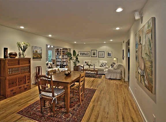 This home is situated on a quiet street, and just a few minutes walk from White Rock Lake, and Williamson Park. Featuring a unique and flexible floor plan, this home has two living areas, and a dining area. The main living area enjoys views of the backyard patio, and sparkling pool with fountains. The sizeable kitchen has ample white cabinets, tile counter tops, ceramic tile floor, and includes a breakfast area. A separate laundry room is adjacent to the kitchen. A large master bedroom with a sitting area, and two additional bedrooms are on the first level. Thermopane windows can be found throughout the house. An impressive, large upstairs addition offers many opportunities. This room has maple floors, a full bathroom, and separate a/c and heating. The current owners use this space as a studio, office, and a bedroom. A two car attached garage, automatic gate, circle drive and sprinkler system add to the many amenities of this superb home.