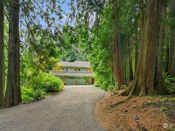 Privacy in a forested setting only minutes to Winslow! This 2-story 4 bedroom Chaffey built home on 1.64 acres has a beautiful setting in the trees with minimal yard maintenance for easy living. Majestic cedar trees line the driveway and custom landscaping surrounds the home. Oriented to the south for beautiful filtered sunlight. Seasonal stream and pond. Upgraded kitchen with new cabinets, granite counters and appliances. Roof and exterior paint 5 years old. Central Vac. A third bay of the garage has been converted to a shop. New interior paint. Small fenced yard with astroturf. Centrally located with under 10-minute drive to Winslow with access to schools, shopping and the ferry. Close to Gazzam Lake Park. Enjoy tranquility in nature!
