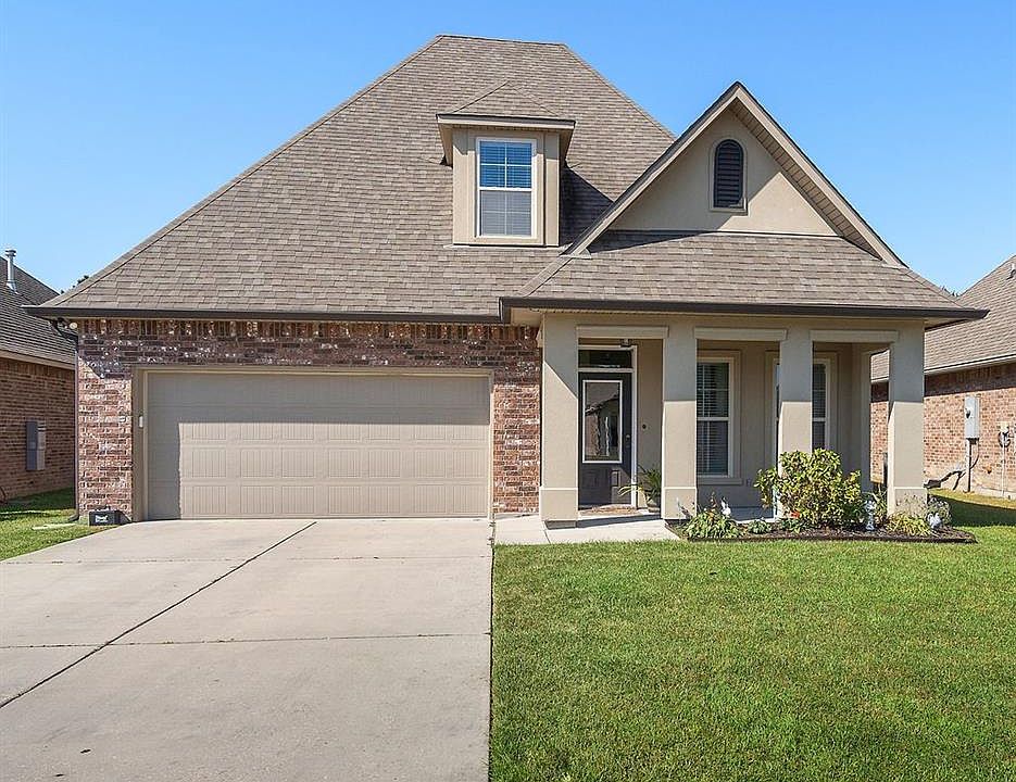 Built in 2016 by DSLD Homes, this plan offers a spacious two-story, open layout designed for modern living. Features include wood flooring in the main living areas, granite countertops in the kitchen and bathrooms, and a gas fireplace in the living room. The kitchen offers ample counter space and an oversized pantry for storage. Refrigerator, washer and dryer included.