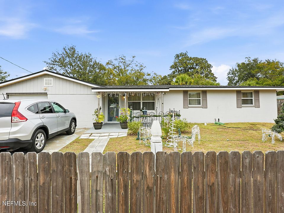 Well-maintained 3BR/2BA home built with sturdy concrete block construction, offering lasting value and peace of mind. The attached garage and newer roof add convenience and reliability, while the spacious eat-in kitchen provides the perfect setting for family meals or entertaining. A screened lanai overlooks the large fenced backyard, ideal for kids' play area, pets, gardening and/or relaxing outdoors. This versatile property suits first-time buyers, investors, downsizers, and others seeking comfort and practicality. Its prime location places you close to shopping, schools, worship centers, parks, restaurants, gyms, and major routes like I-295, with close access to the Jax Naval Air Station. Combining durability, functionality, and lifestyle, this home is a smart choice for anyone looking to enjoy both community and convenience.