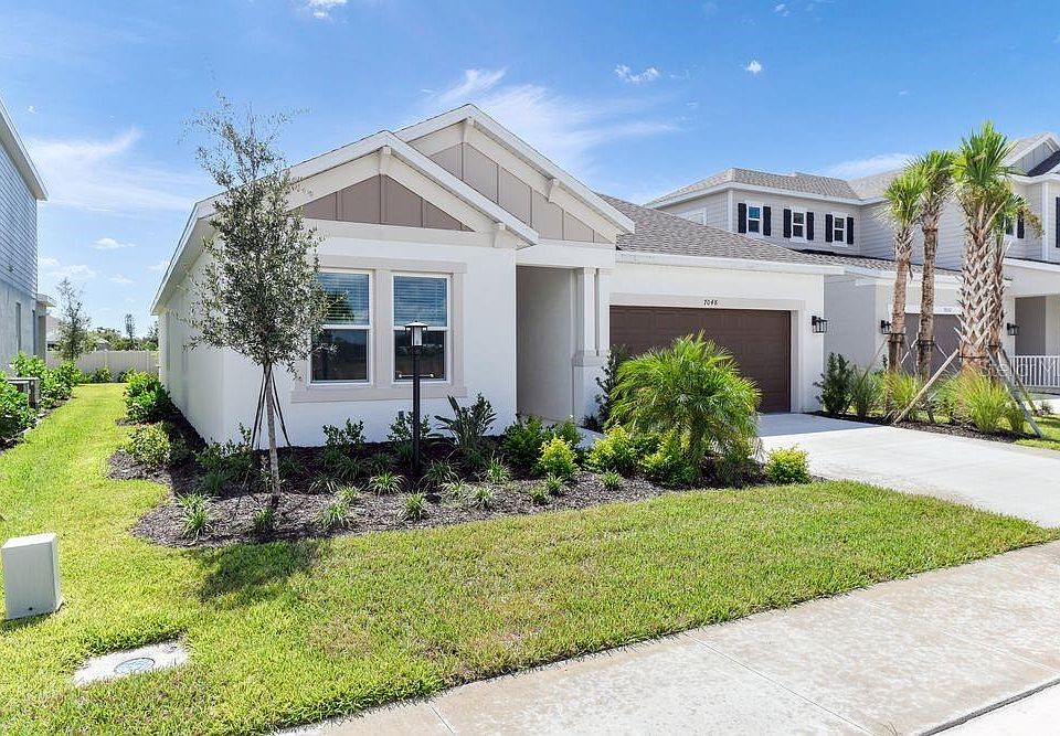 New Construction - Ready Now! Built by Taylor Morrison, America's Most Trusted Homebuilder. Welcome to the Grenada at 7048 Foxboro Way in Tiburon. The Grenada welcomes you in with a bright, open layout that brings the great room, gourmet kitchen, and casual dining area together at the heart of the home. The kitchen shines with a large island, step-in pantry, and plenty of cabinet space—ideal for hosting or everyday living. Tucked at the back for added privacy, the spacious primary suite features a tray ceiling, dual-sink vanity, large shower, and an oversized walk-in closet. Three secondary bedrooms offer flexibility for guests, hobbies, or a growing household. One bedroom at the front enjoys direct access to a full bath, while the other two share a bath near the laundry room. A pocket sliding glass door off the great room leads to the lanai—perfect for relaxing evenings outside. Additional Highlights Include: tray ceiling in the primary bedroom, pocket sliding door in the great room, gourmet kitchen, study with French doors, and a door with direct access to the laundry room from the primary closet. MLS#A4648448