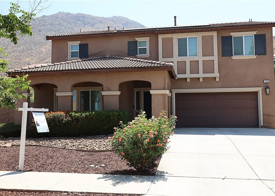 Discover this exquisite home nestled near picturesque mountain views in Riverside. Situated close to the 215 Freeway, this residence boasts a stylish kitchen with granite countertops, a convenient pantry, 5 bedrooms, and 3.5 baths. The downstairs bedroom could serve as a charming grandmother suite. Additionally, enjoy the spacious upstairs loft and the inviting pool with a jacuzzi, side seating, and color-changing LED lights. With easy access to grocery stores and dining options, this home offers both comfort and convenience. Benefit from the low HOA fees and solar panels.