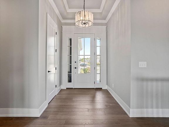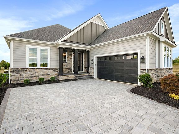 This custom ranch features first floor 10' ceilings, 8' doors, and a 12' box beamed ceiling in the great room. The mudroom entry includes a bench & closet. Tray ceilings adorn the foyer, dining & owner's suite. The kitchen includes a large walk-in chef's pantry and Bosch appliances. The owner's suite features an oversize shower and huge wardrobe. A first floor guest suite w/private bath, a private library, a covered veranda, and a finished lower level with family room, third bedroom, fitness room and full bath, all add to the appeal of this beautiful home.