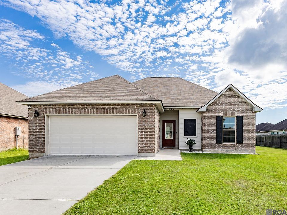 Nestled in a well-established subdivision, this charming residence boasts a fantastic floor plan, featuring three bedrooms, two bathrooms, a mudroom with cabinet storage adjacent to the washroom flowing into a spacious master closet that seamlessly connects to the master bath, complete with a double vanity, soaking tub, and stand-up shower. The large master bedroom is strategically situated on a split floor plan. The flowing kitchen, dining, living, and foyer areas provide a sense of spaciousness, while the kitchen itself showcases beautiful granite countertops, a large island, and stylish white cabinets. The rear patio has been reinforced with extra slab cement, perfect for barbecuing, and offers views of open fields. Located within a highly regarded school district, this property does not require flood insurance. We invite you to schedule a private viewing today to fully appreciate this exceptional property.