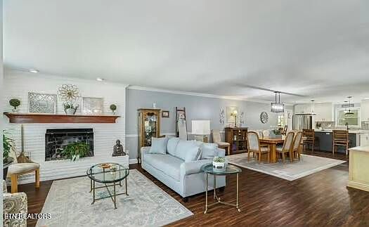 Garage refrigeratorNew guttersNew windowsOpen living conceptGorgeous fireplaceKitchen islandCounter top electric stove