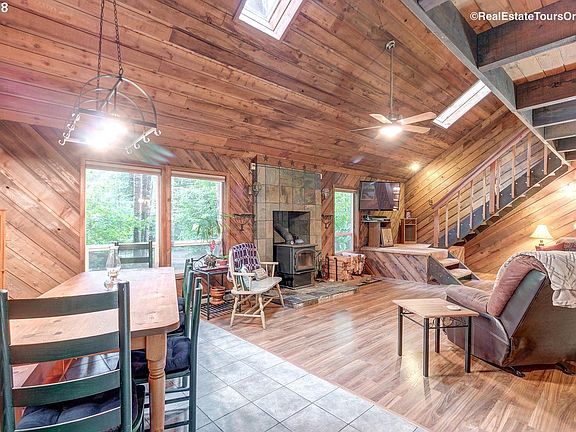 Located 10 miles from Mt Hood Skibowl and 17 miles from Timberline lodge and sitting on .26 of an acre is a cozy 3 bedroom, 2 bathroom cabin with a one year old wood burning stove. The vaulted ceilings with Skylights and walls covered in cedar/pine make for an inviting feel. Enclosed patio adds for extra indoor space on those rainy/snowy days. The pull through drive is perfect for RV and/or Boat storage and towing.