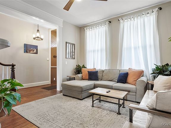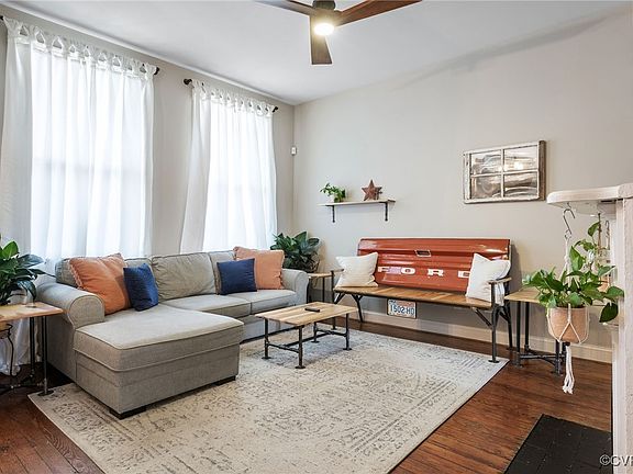 This stunning standalone home in Church Hill offers a spacious open floor plan with brick accents in every room and the original solid hardwood floors that add warmth throughout the space. Large living and dining rooms, generous sized kitchen with pantry/utility room, and a powder room complete the first level. Upstairs offers 3 bedrooms and an updated full bath. The primary bedroom comes with both a walk-in closet and a second closet, while the third bedroom features its own walk-in closet. Outside, you'll find a large fenced backyard with Zoysia grass, storage shed, custom chicken coop, and a brick patio - an ideal space for entertaining, relaxation, or hobbies. Enjoy the added bonus of covered off-street parking and a welcoming covered front porch. Located in the heart of one of Richmond's most vibrant neighborhoods, this home is within walking distance of local favorite restaurants like The Roosevelt, Grisette, Alewife, The Hill Café, Union Market, and so much more! It’s centrally located to Libby Hill Park, Jefferson Park, Chimborazo Park, and even pickleball courts. With easy access to I-95, I-64, and Broad Street, you’ll have everything you need just a short distance away. Embrace the charm of this historic area, with rich history to explore right at your doorstep.
