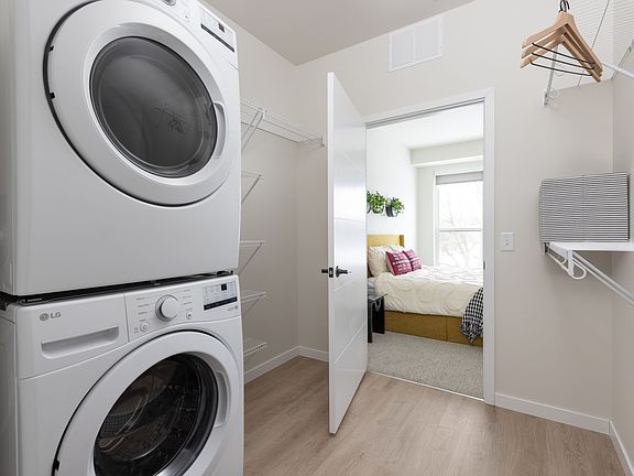 Each apartment home is filled with natural light, featuring open-concept contemporary kitchens and an in-home washer and dryer. Upgraded hand-picked finishes include wood-inspired flooring, tile backsplash, and quartz countertops that create an upgraded living experience.