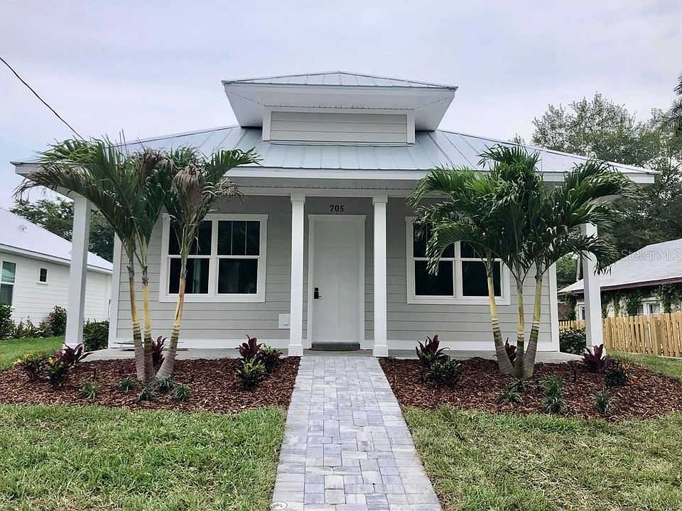 The "SAND DOLLAR" is a BRAND NEW coastal CHIC cottage located in popular historic Wares Creek district near downtown Bradenton. This LOW MAINTENANCE 3B/2B home is designed by Beacon Designs and built by Coastline Construction. Base package includes: New Metal roof, Hurricane Impact PGT windows, SOLID core wood doors, wood look tile through out, upgraded trim package, Whirlpool appliances, Moen Chateau fixtures in chrome, Quartz countertops, one car garage, new landscaping with Rain bird irrigation system, St. Augustine grass, and epoxy garage floor in your one car garage. You will love the open floor plan, vaulted ceilings, cozy front porch and MOST the home is BRAND NEW! Master bedroom has dual closets. Come and see this fabulous home in a fabulous location. No Homeowners association or CDD fees and not in a flood zone. Don't wait on the last one... the other 2 sold in less than a week!