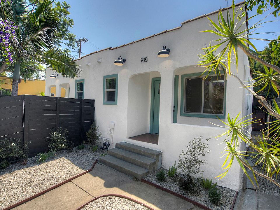 Immerse yourself in the culture and lifestyle of Venice Beach in this newly renovated one-bedroom apartment. Perfectly situated close to the beach and the urban dynamism of Abbott Kinney and Rose Avenue, the apartment is an elegant private getaway at the heart of one of the city's most desirable destinations. Gated on all sides for privacy, the Spanish Revival style building is designed to be enjoyed both outside and in; the open porch is ideal for morning coffee and evening cocktails, and the landscaped outdoor spaces are planted with Californian native species. A/C and cross-breezes ensure that the apartment is kept beautifully cool, and a kitchen skylight enhances the plentiful natural light. The interiors are fitted with modern comforts and eclectic finishes, including luxury herringbone vinyl flooring throughout. The sleek contemporary kitchen features quartz countertops and stainless-steel appliances, and the teak vanity and tilework give the spacious bathroom a beach-spa vibe. An in-unit washer dryer makes for easy practicality, and the apartment as a whole has everything you need for self-sufficient, streamlined living. Ultimately, this is a home for anyone who wants to experience the best that Venice has to offer laid-back beach culture, the best bars, restaurants, and boutiques, and the luxury of your own private beach retreat. Rental amount includes discounted rent concessions for 11-month lease term. 6 month leases also available at higher rate. Renter responsible for all utilities. Landlord pays for gardener.