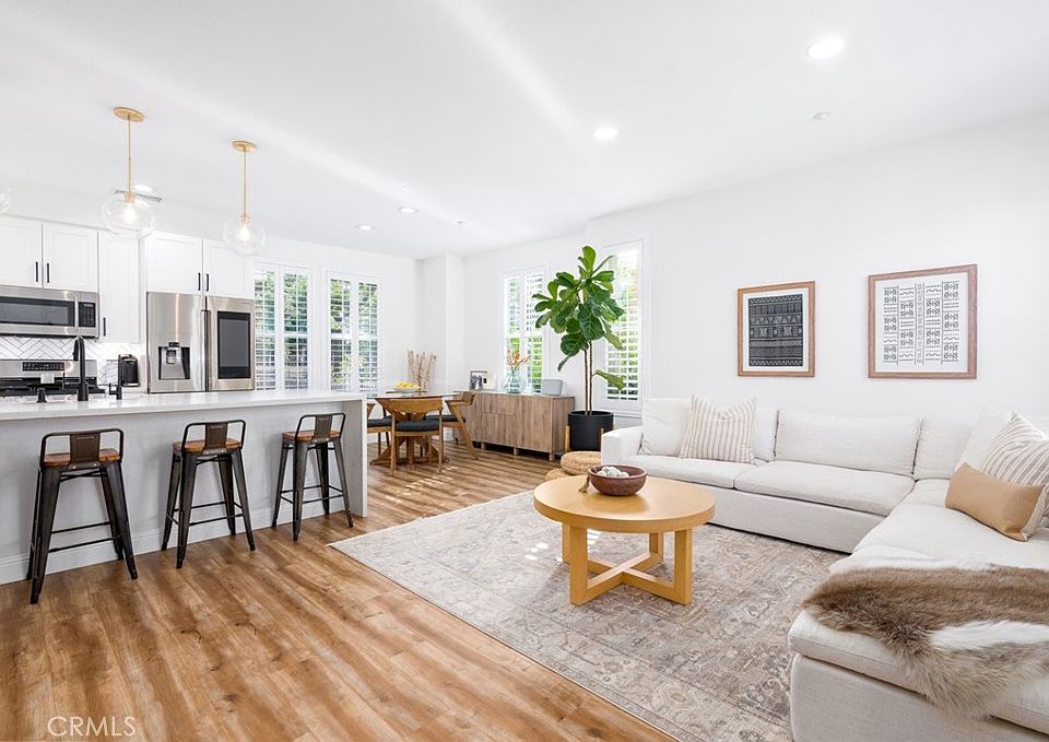 Not a single detail spared in this model perfect home. Tucked away in the quiet back corner of the desirable Berkley Townhomes, this end unit is in the prime community location. This spacious 2 bedroom + loft, 2.5 bathroom home has been recently remodeled with designer finishes throughout. Features smart home capabilities with Smart Switches ("Hey Google, turn on the kitchen lights!”), Nest thermostat, Ring doorbell, & rapid charge EV charger in garage. Brand new water softener and reverse osmosis system, energy efficient tank-less water heater, brand new AC air handler, and amazing natural light (only found in end units). Upstairs loft works well as an office with custom built walnut desk, or loft could be easily converted into a 3rd bedroom. Near major freeways, close to downtown "Birch Street Promenade" entertainment area, near the "Brea Tracks" walkways, shopping and more. HOA includes trash, sparkling pool, and tot lot playground.