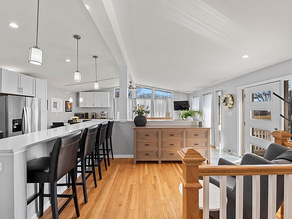 Stylishly renovated 3 beds, 3 baths ranch with new windows and finished basement. Bright, open concept home with high ceilings, updated kitchen and appliances with raised counter seating, coffee bar and new floors. The finished basement includes a rec room, two additional office/flex rooms, 3/4 bathroom and a fantastic laundry room with newer washer/dryer and sump pump w/battery backup. New back steps lead to a wonderful yard for entertaining that contains a fire pit, large fenced yard and a private screened-in porch. 2.5 car garage with newly expanded driveway, new fence, and landscaping round out this beautiful home. Short walk to Eads Elementary School, close to shopping, expressway and new South Shore Train.