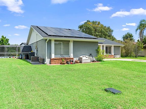 One or more photo(s) has been virtually staged. Bright and beautifully updated 4-bedroom, 2-bath pool home with a cozy fireplace and solar panels (TO BE PAID OFF BY THE SELLERS AT CLOSING), set on a tranquil cul-de-sac in a community full of benefits. Large windows fill the home with natural light, creating a warm and welcoming feel. The open layout features an upgraded kitchen with granite countertops, stainless-steel appliances, and modern lighting, connecting seamlessly to spacious living and dining areas with elegant wood-look flooring. The inviting fireplace adds charm, while four versatile bedrooms provide flexible space for family, guests, or a home office. The sparkling screened-in pool, covered lanai with ceiling fans, and storage shed create the perfect outdoor retreat. Recent upgrades—including a new roof, AC, and water heater completed in 2022—ensure peace of mind and low-maintenance living. The area offers a low HOA and valuable amenities such as a park, playground, pool, tennis courts, and more, with convenient access to shopping, dining, schools, Lake Marion, the Disney Wilderness Preserve, and Orlando’s world-famous attractions. This light-filled pool home combines comfort, style, and a desirable location—ideal as a primary residence or smart investment! Please contact the listing agents to schedule showings. Offers will be accepted through Thursday, October 16th, 2025 at 2:00 pm. AT SELLER'S DISCRETION, AN OFFER MAY BE ACCEPTED AT ANY TIME.