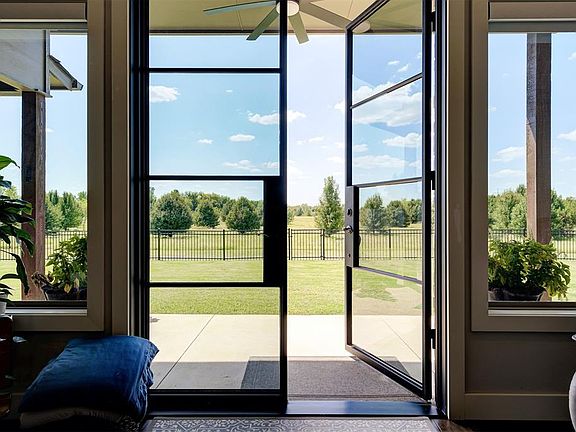 Welcome to 705 Clementine. This 2019 one owner custom build by Bear Creek Homes is located in Settlers Ridge of Yukon. A perfect blend of modern and traditional, quality finishes, numerous upgrades, and unobstructed sunset views truly make this home special! Stunning wood floors throughout, soaring ceilings, and Monte Cristo door with floor to ceiling windows bringing those evening sunset views right into your home. Kitchen overlooks the dining and living featuring center island, built-in SS appliances, gas cooktop, Dbl ovens, and pantry. Private master suite with wood floors, stunning en-suite with double vanities, whirlpool tub, walk-in shower and walk-thru master closet to laundry room. The living room truly is a show stopper with the stunning Monte Cristo iron doors, high ceilings, oversized ceiling fan, gas fireplace with built-ins on either side. The guest bedroom wing gives owners the option of three bedrooms or two bedrooms and a study. The backyard and patio are setup perfectly for outdoor entertaining and enjoying the open wooded acreage. Numerous updates to include the extension of the back patio and sidewalks on either side of the home, wood floors in the master bedroom and study, all new exterior paint, front storm door, side entry door added in the laundry room, remote operated Levolor style blinds at back door/windows just to name a few. This home has so much to offer with so many updates and improvements!