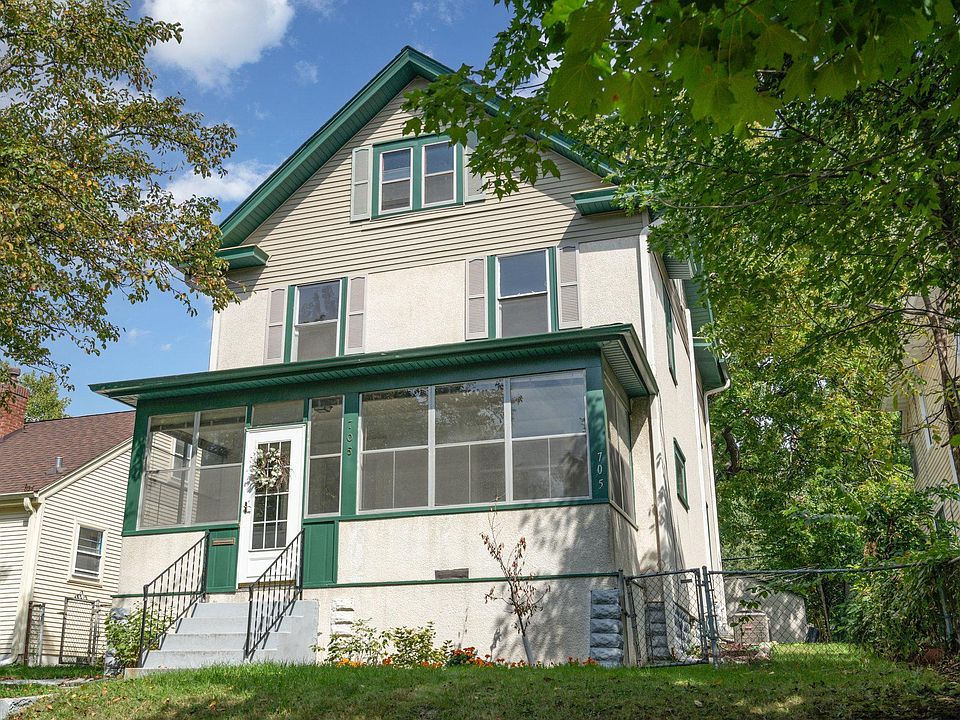 Beautifully Updated Home Near Como Park. Step onto the inviting front porch and into a home that perfectly blends modern updates with timeless character. The main level features a welcoming foyer, a spacious living room, an elegant dining room, a half bath, and a sunlit front porch. The kitchen is a showstopper, boasting crisp white cabinetry, granite countertops, and stainless steel appliances. Upstairs, you’ll find four bedrooms on one level (one without a closet—ideal for an office) and a stunning full bath with a tile-surround tub. The home also offers an unfinished attic expansion area and lower level for future potential. Throughout, you’ll appreciate the refinished hardwood floors, beautiful woodwork, coved ceilings, and charming details.