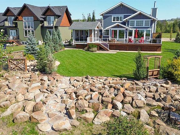 This custom-built property holds a premium location in Meridian Beach, a lakefront community on Gull Lake, Alberta. The development offers several amenities including its unique canal feature that provides unparalleled boat access to the lake, two white sand beaches, playgrounds, beach volleyball, tennis/pickleball courts, & a community hall. Escape from the city, while being conveniently close to Calgary, Edmonton, & Red Deer. Offering a premium west-facing LAKEFRONT lot with unobstructed panoramic views! The 26x26’ heated garage offers room to park full-sized vehicles & all the toys! Head inside to explore the 2,832 sq ft of living space; the main floor features soaring vaulted ceilings, a beautiful stone surround gas fireplace & a wide open floor plan—great for entertaining! Large west-facing windows absolutely showcase the sunsets over the lake. Enjoy the massive 41x16’ private rear deck with glass railings, plumbed with natural gas, & a custom-built screened outdoor sunroom (complete with high-quality Weather Master vinyl windows, power, white-washed pine interior, & Douglas fir beams)—an absolute must-see! Pristine landscaping all around, privacy shades, exquisite boulder work, with thoughtful zeroscaping in those storage/trailer parking areas. Luxury vinyl plank flooring with beautiful finishings throughout this home. The master suite is located on the upper floor & is equipped with a large walk-in closet, 3pc ensuite, & comes with an unmatched view of the lake! Just around the corner is another large bedroom; don’t miss the loft overlooking the open-to-below living space & more lake views through transom windows—a great place to have an evening read of your favourite book. The kitchen is an absolute delight, featuring a corner sink overlooking the backyard, custom cabinetry with open wood shelving, center island, tile backsplash, & a full stainless appliance package, including wine fridge. The main floor includes a generous laundry room with additional coat storage, flex room, 2pc guest bathroom, offering great functionality when hosting family get-togethers. Downstairs you’ll find a fully finished living space with kitchenette, 9’ ceilings, 2 big bedrooms, 4pc bath, & a generous second living room. This house is very roomy & meticulously cared for. The Hardie Board exterior enhances visual appeal while ensuring durability. Enjoy summer afternoons at the beach, morning walks along the lake, or hosting barbecues on your massive rear deck. Additional features include: functional in-floor heating on the lower level, water softener, central vac, AC, fire pit, Roxul sound-dampening insulation, triple-pane windows with sun stop, private dock on canal, & a 1/3 acre lot size. Meridian Beach is Gull Lake's finest destination with a year-round community that offers many neighbourhood activities & amenities, a general store & restaurant—a great place to meet neighbors for a bite to eat. Ice fishing, tobogganing, skating, swimming, sunbathing, & the yearly Canal Days!